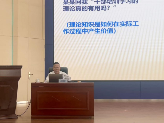 開(kāi)班第一課,惠州市委黨校二級(jí)調(diào)研員邱國(guó)耀對(duì)學(xué)習(xí)貫徹黨的二十屆四中全會(huì)精神進(jìn)行宣講。他緊扣《建議》,從“四個(gè)材料”“三個(gè)關(guān)系”方面介紹會(huì)議概況,深入淺出地講解了“十五五”時(shí)期的時(shí)代背景、歷史方位,系統(tǒng)解讀了全會(huì)精神的核心要義,特別是對(duì)“發(fā)展新質(zhì)生產(chǎn)力”“科技創(chuàng)新與產(chǎn)業(yè)升級(jí)”等戰(zhàn)略部署的解讀,對(duì)推動(dòng)國(guó)有企業(yè)高質(zhì)量發(fā)展具有很強(qiáng)的指導(dǎo)意義。此外,邱國(guó)耀還從理論層面入手,對(duì)意識(shí)形態(tài)工作展開(kāi)分析,闡述了意識(shí)形態(tài)的基本概念、本質(zhì)特征及現(xiàn)實(shí)意義等,切實(shí)增強(qiáng)大家對(duì)意識(shí)形態(tài)工作極端重要性的認(rèn)識(shí)。