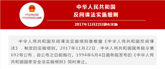 第一條?根據(jù)《中華人民共和國(guó)反間諜法》(以下簡(jiǎn)稱(chēng)《反間諜法》),制定本實(shí)施細(xì)則。