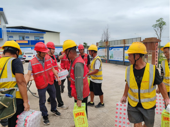 為切實(shí)做好防暑降溫工作,保障一線建設(shè)者的健康安全,5月28日上午,由市水電公司承建的宏達(dá)路(惠大高速至一號公路段)工程(一期)臨時(shí)黨支部聯(lián)合項(xiàng)目部,在施工現(xiàn)場開展“夏日送清涼”慰問活動(dòng),為奮戰(zhàn)在高溫下的工人們送去黨組織的關(guān)懷與夏日的清涼。